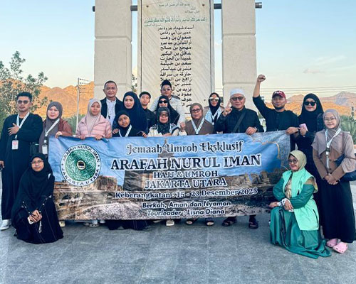 Tim kami terdiri dari para profesional yang memahami tata cara perjalanan suci, bawalah kenyamanan, keamanan, serta ketenangan batin Anda. Melalui pelayanan yang transparan, akuntabel, dan ramah, Nurul Iman Arafah hadir untuk memudahkan setiap Muslim menapak langkah menuju tanah suci dengan keyakinan dan ketenangan hati. Bersama kami, setiap perjalanan ibadah bukan sekadar perjalanan fisik, tetapi perjalanan spiritual yang menguatkan iman, mempererat persaudaraan sesama jamaah, dan meninggalkan kenangan yang insya Allah abadi dalam hidup Anda.